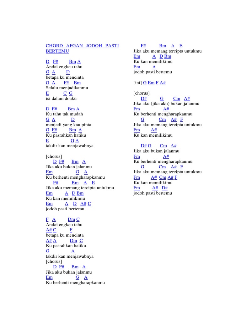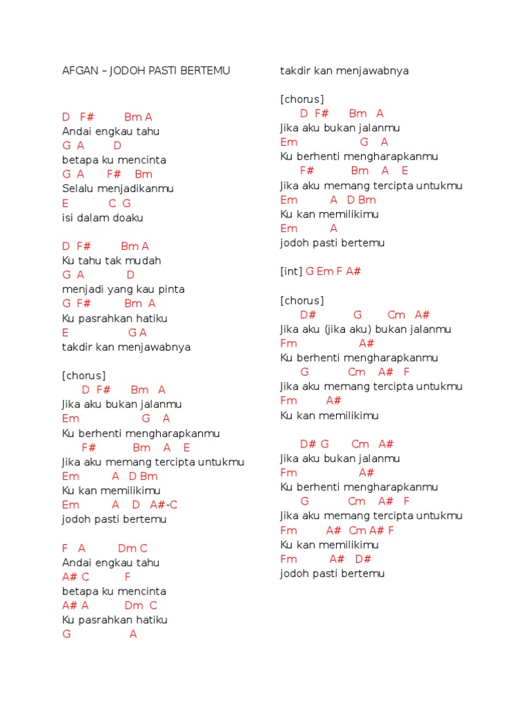 Chord Dan Lirik Lagu Afgan Jodoh Pasti Bertemu By Chord Zila Issuu