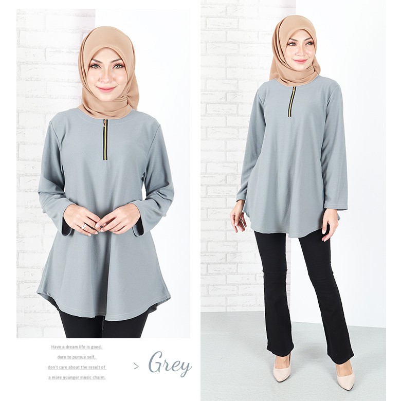 Ready Stock Baju Fashion Muslimah Blouse Murah Design Terkini Dengan Zip Menyusu Kms B18516 Shopee Malaysia
