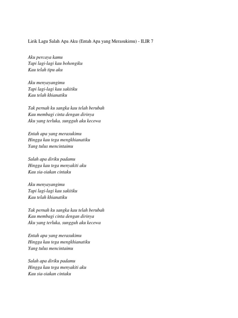 Salah Apa Aku Lirik Ilir7 Entah Apa Yang Merasukimu Youtube Lirik Lagu Terbaik Lagu