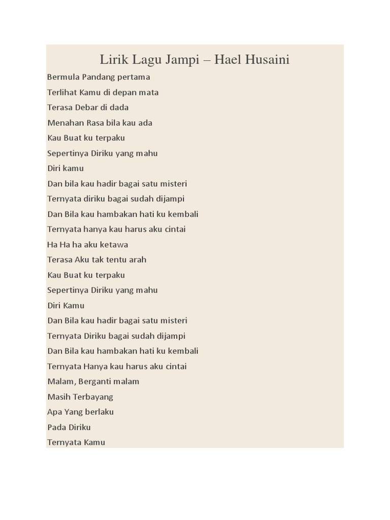 Hael Husaini Jampi Lyrics Lyrics My