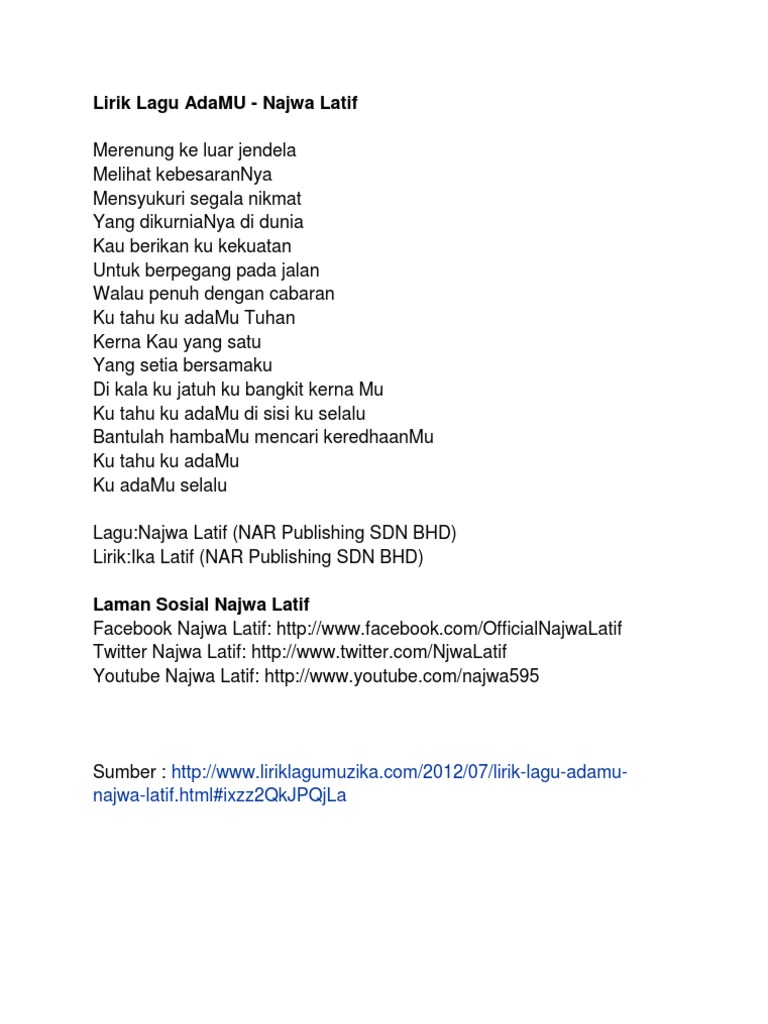 Lirik Lagu Adamu