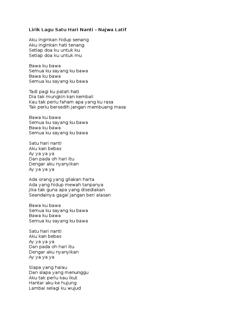 Lirik Lagu Bebas Satu Hari Nanti Najwa Latif Wattpad