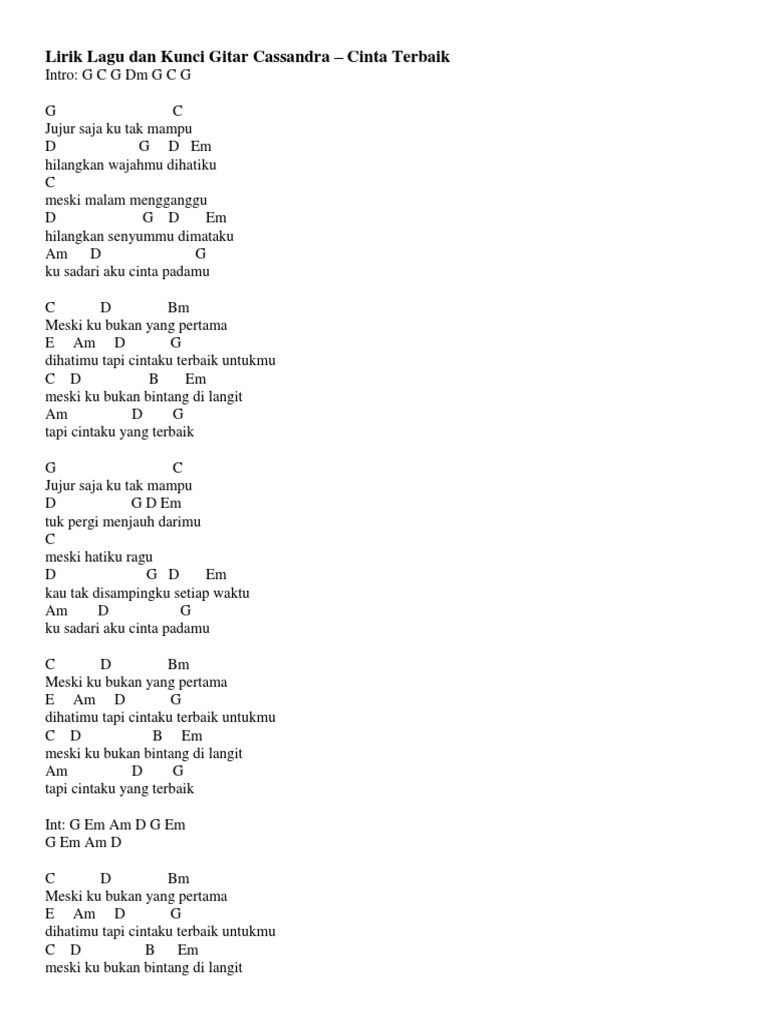 Cassandra Cinta Terbaik Lyrics Chord Gitar Song Lyrics